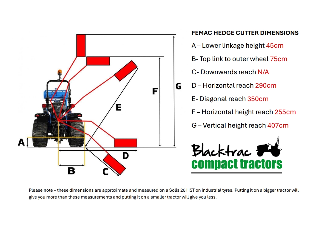 - Fully adjustable hydraulic arms allowing ease of hedge cutting