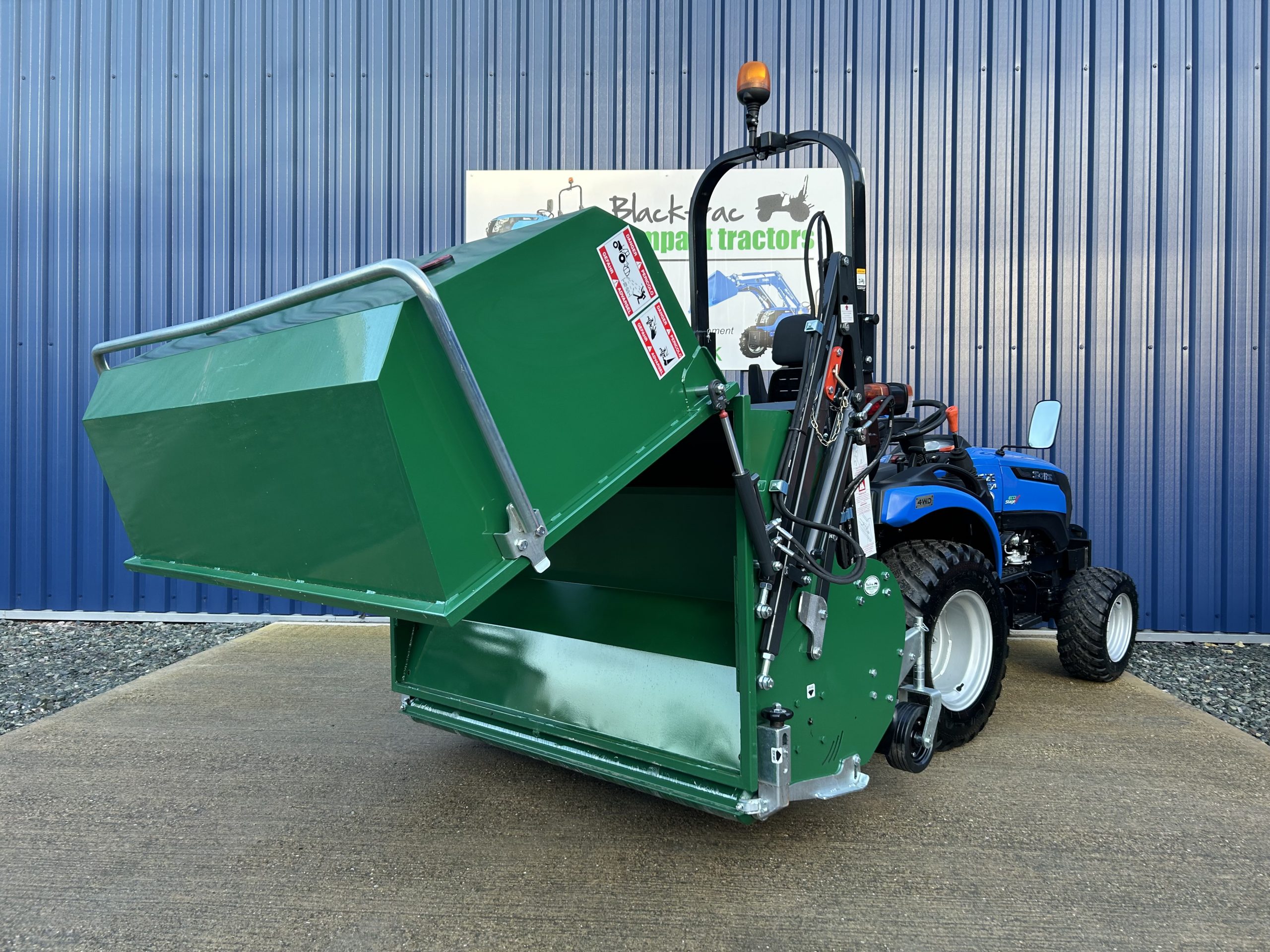 - Huge capacity hopper which is simply hydraulically emptied