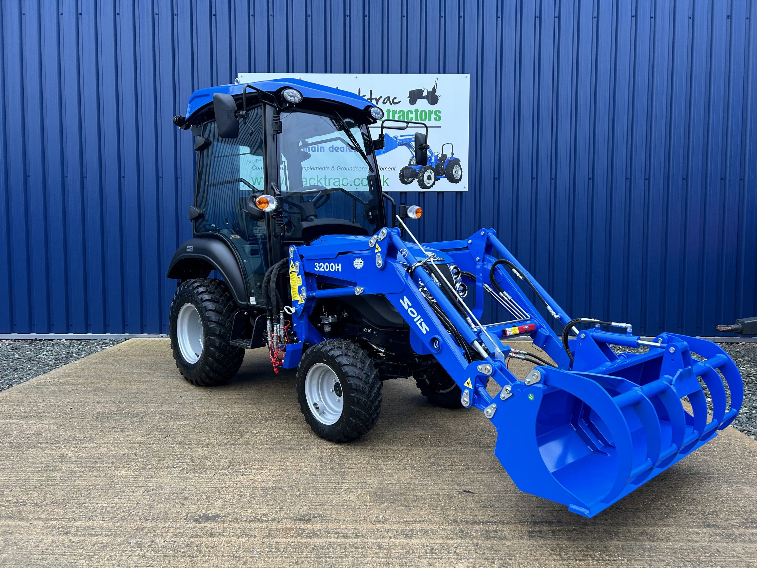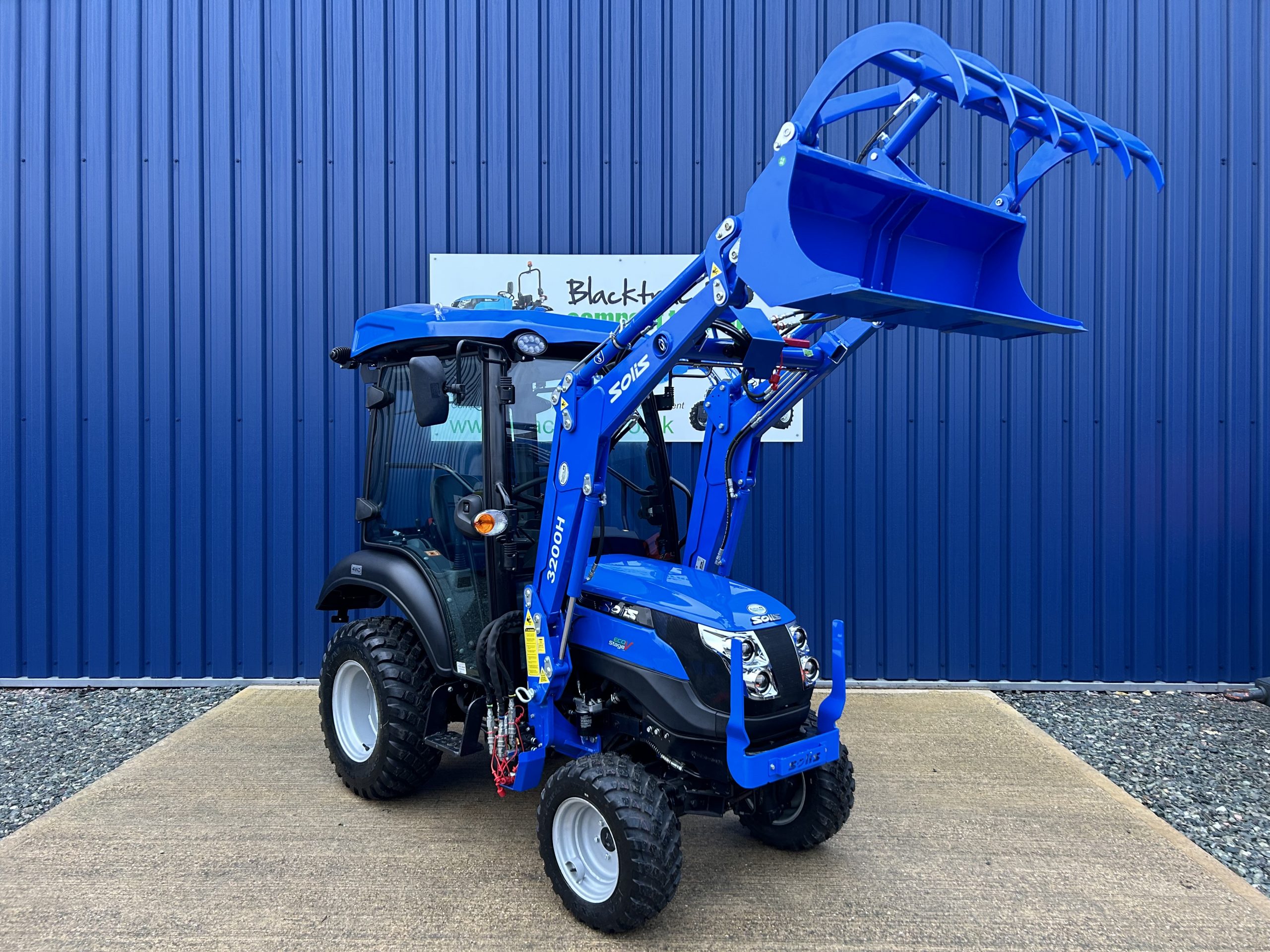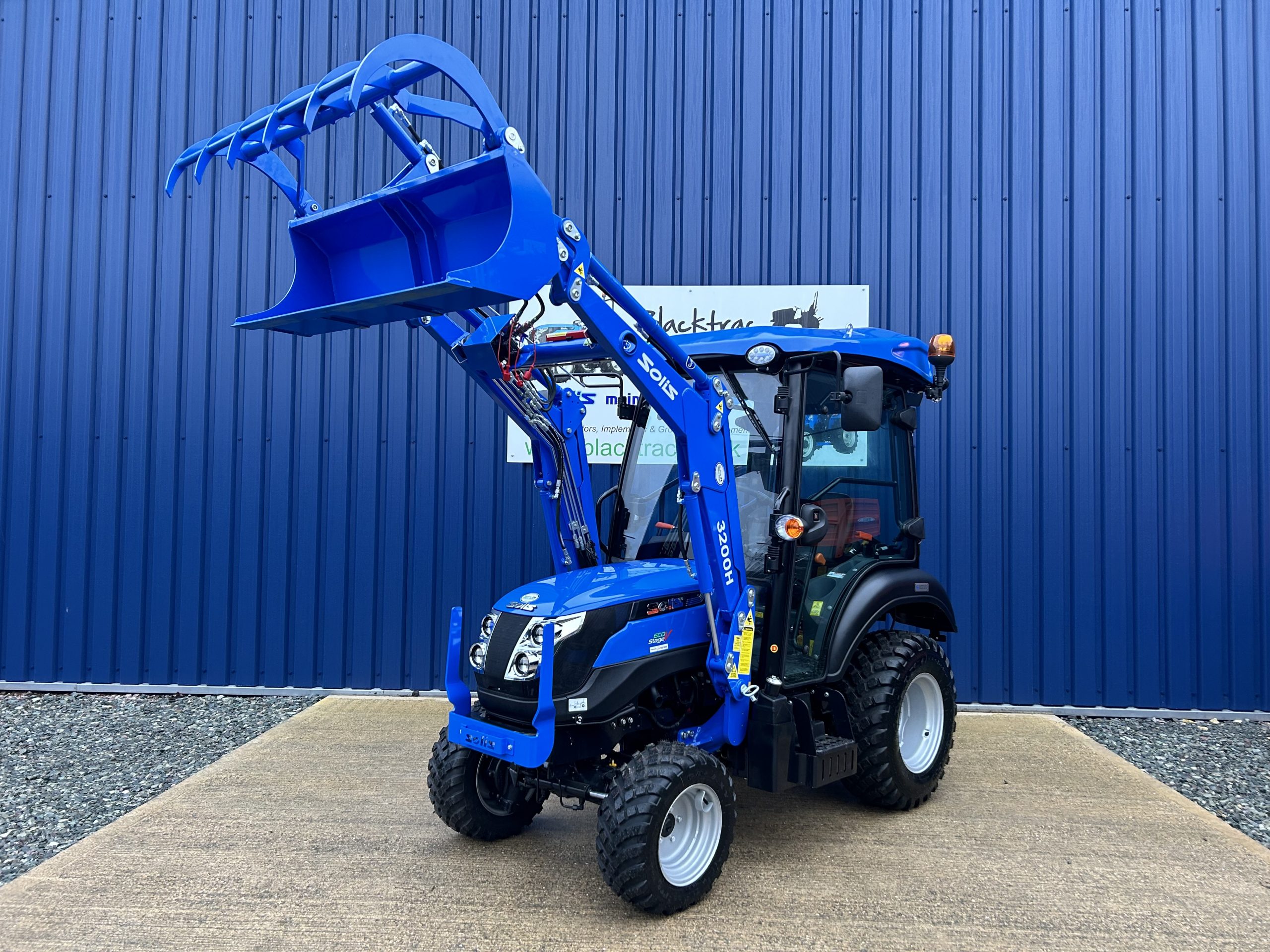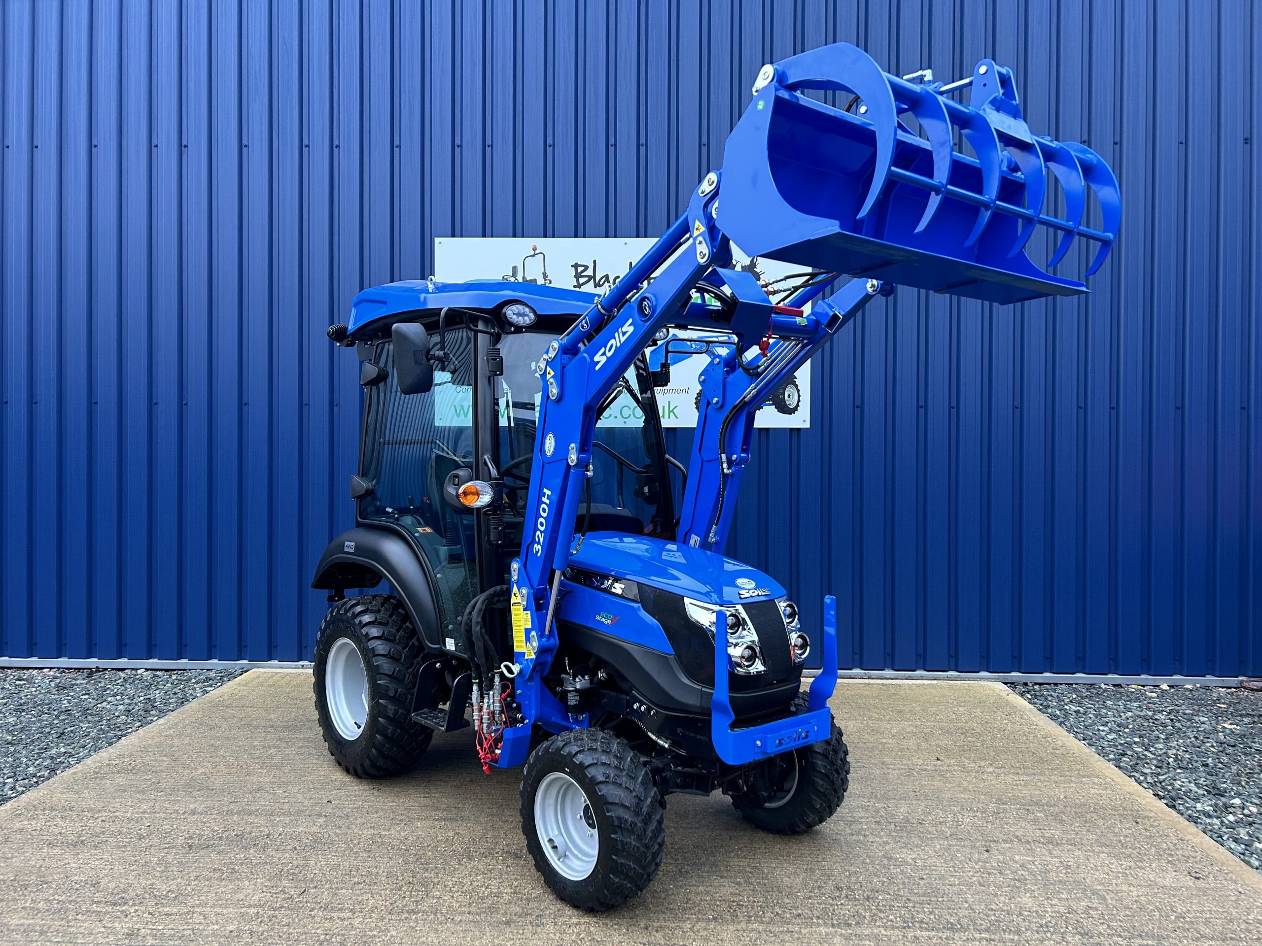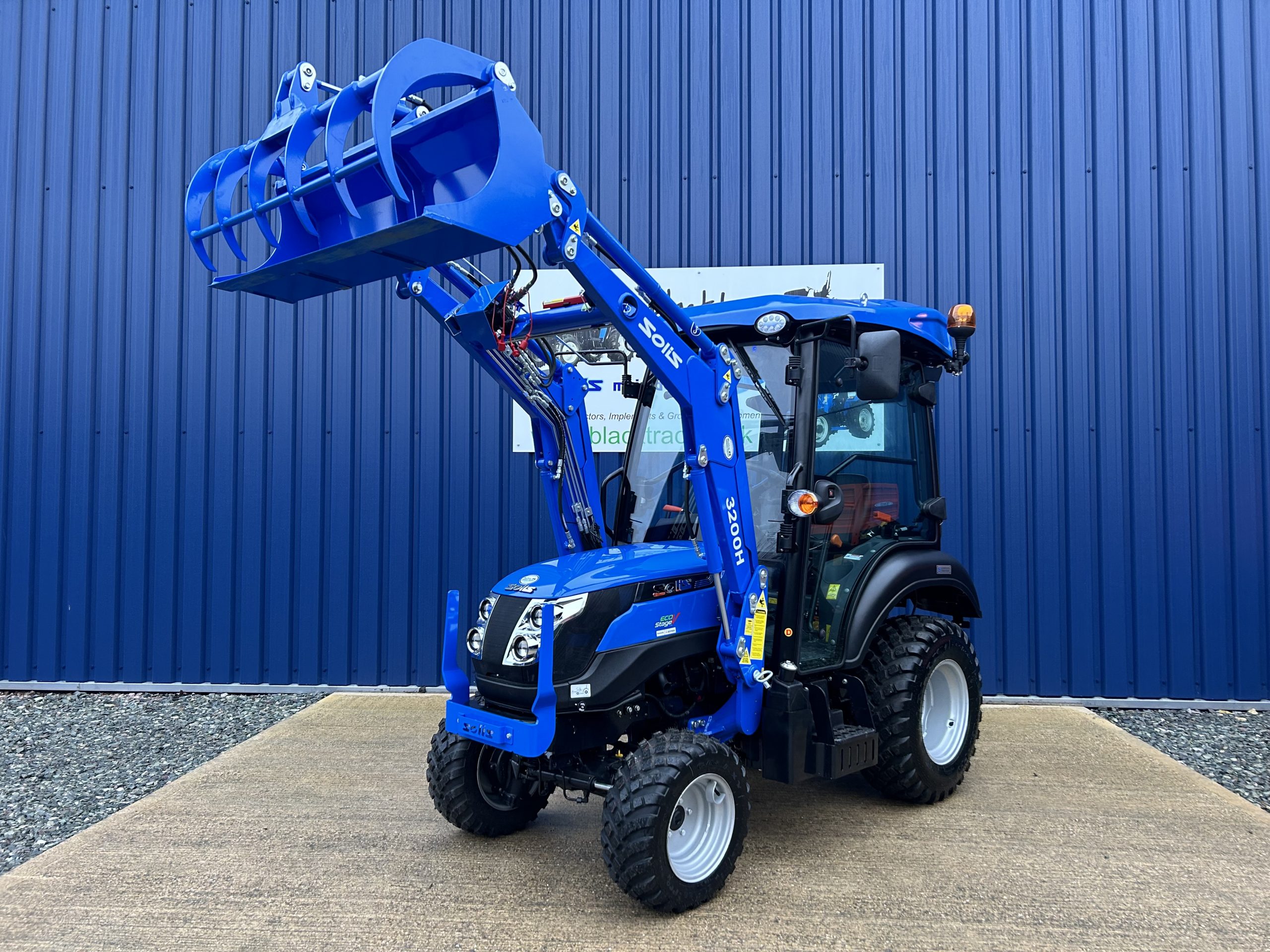 - Fitted with a new Solis quick detachable front loader with a large capacity 4ft wide hydraulic grab bucket.