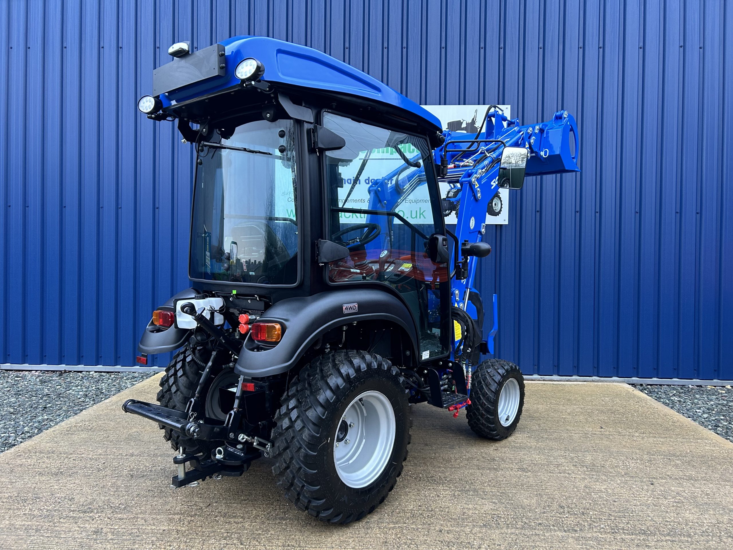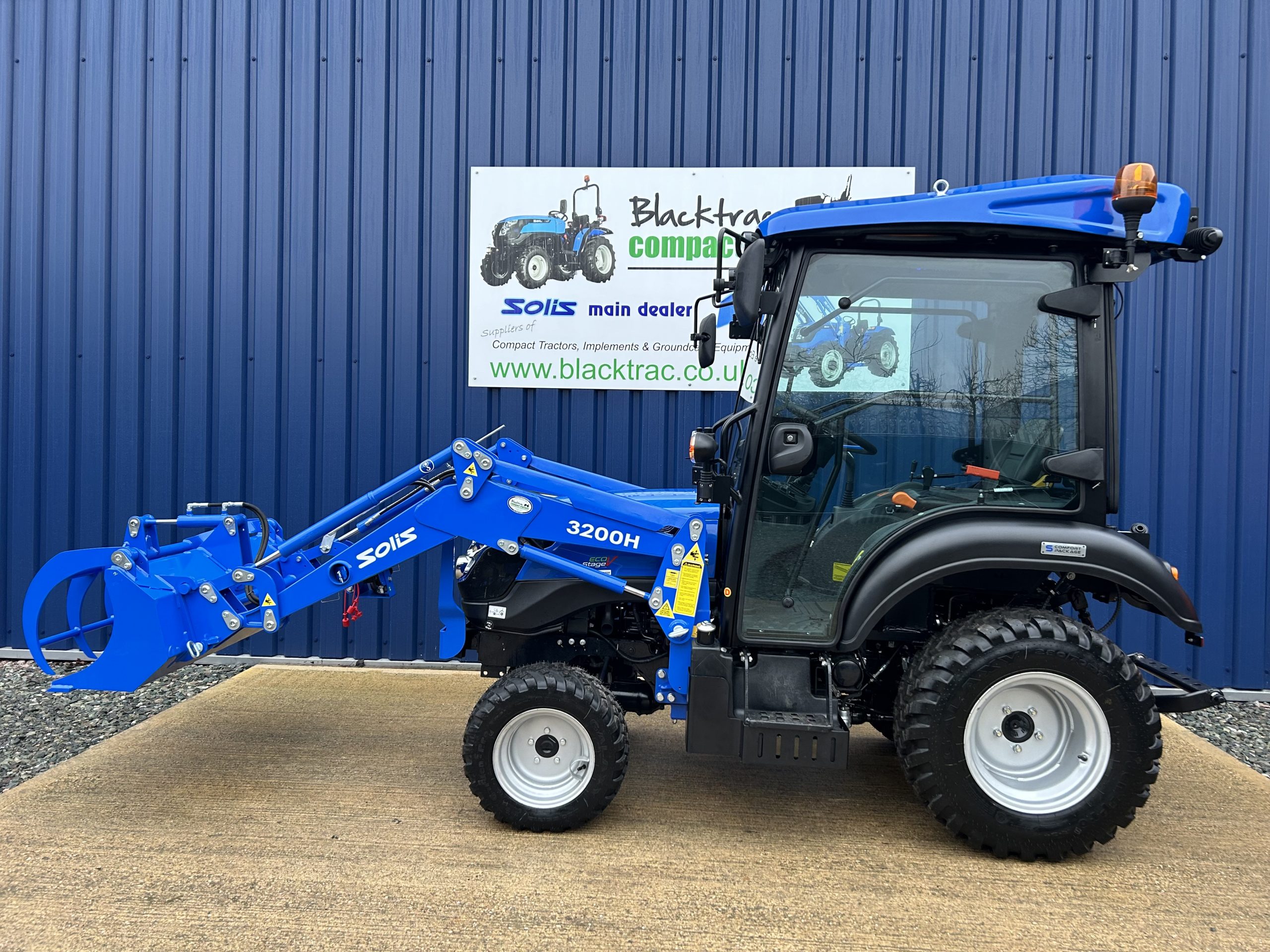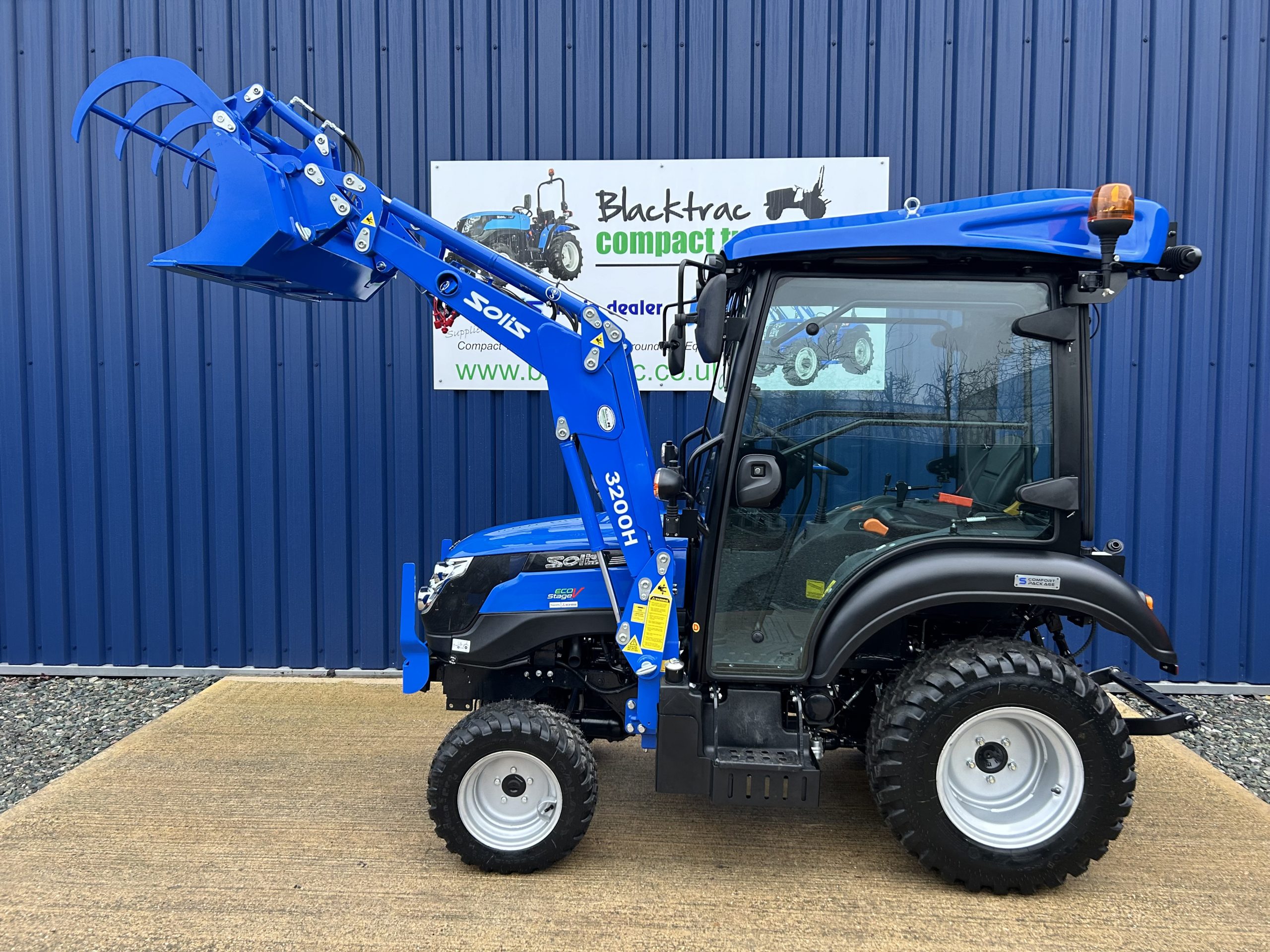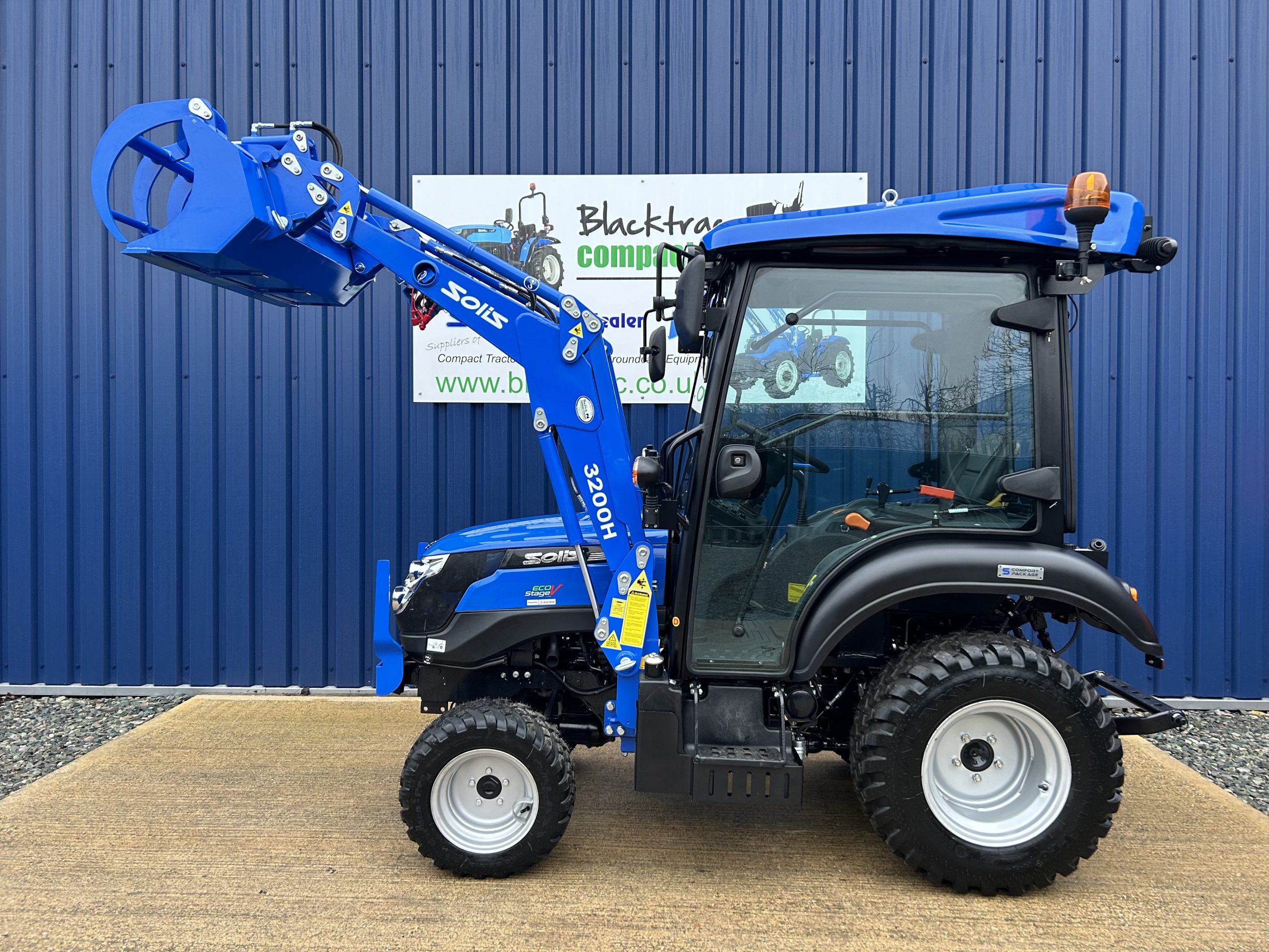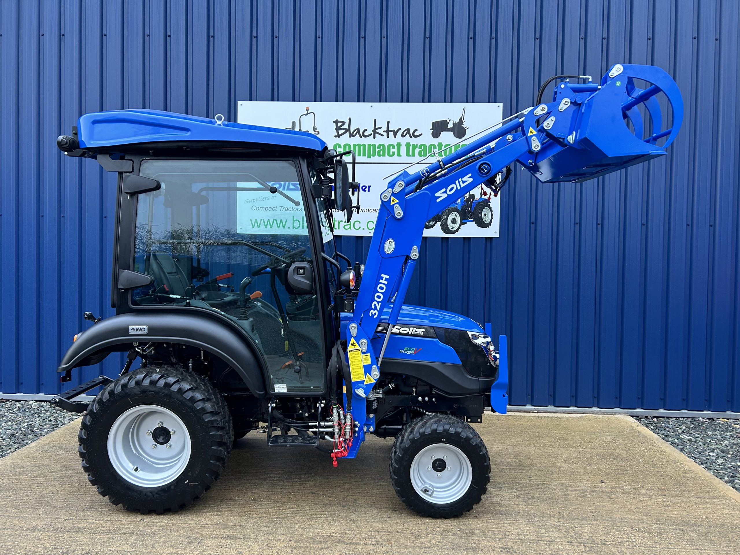 - Fitted with a new Solis quick detachable front loader with a large capacity 4ft wide hydraulic grab bucket.
